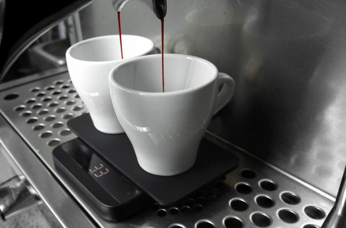 – Tailored to fit a standard commercial portafilter or two 180mL cappuccino cup on the acaia lunar scale.