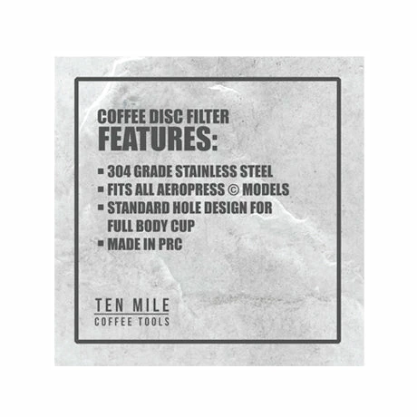 The Ten Mile Coffee Disk designed for the Aeropress® coffee maker is a washable, reusable 100% stainless steel disk coffee filter made from 304 Grade Stainless Steel with a Optimal hole design for a perfect full body cup.