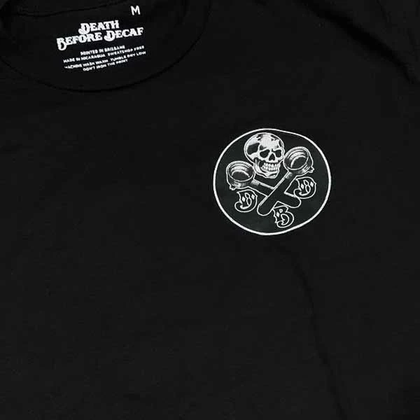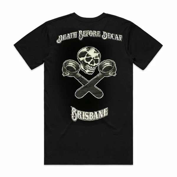 Join the crew with a fresh Death Before Decaf T-Shirt