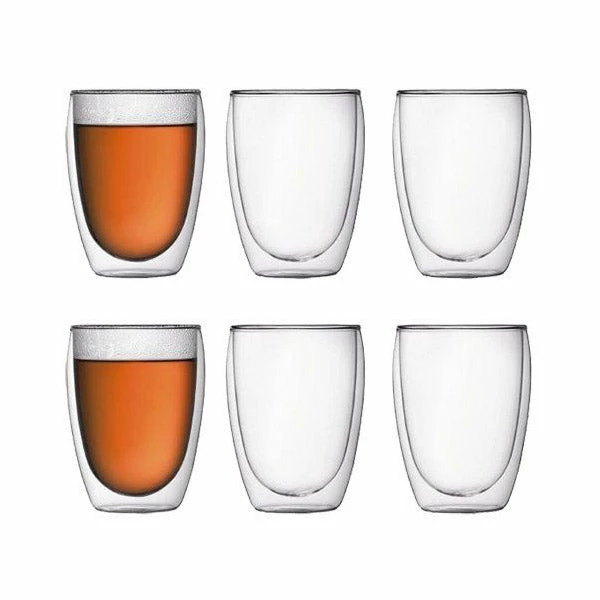 Drink your coffee with class and comfort with the Bodum Pavina Glass 6pc Set. These glasses effectively maintain your drink’s temperature, keep your hands free of condensation, and look stunning.