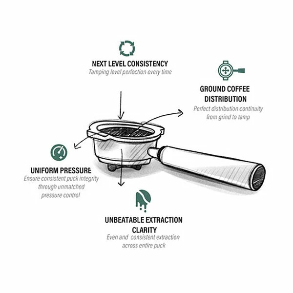 The Cube Automatic Coffee Tamper is that premium and stylish Automatic tamper that provides the ultimate in tamping consistency. It’s made with industry experienced quality manufacturers and the Cube features adjustable tamping pressure and portafilter rest height adjustable forks to fit most portafilters and baskets.