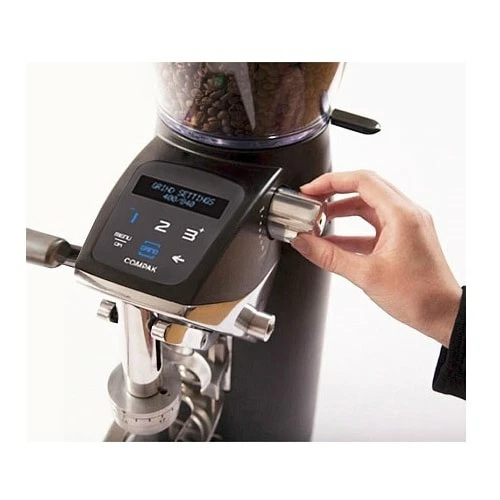 The Compak F10 Conic OD features a multi-functional digital display that gives you control over the dose, counts shots for you, and visualizes grind setting adjustments. The stepless adjustments can smoothly be made with the side-attached knob and the display gives you a quantifiable setting that you can return to if needed.