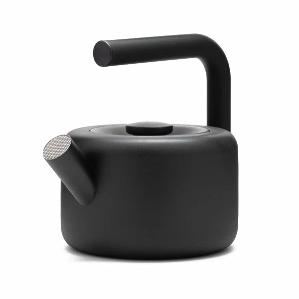 The Clyde Stovetop Kettle has a two-tone harmonic whistle and will sing out to notify you as the water reaches the boil. Pouring can be done one-handed with the nifty magic pour spout that stays closed until you tilt it over. No more holding the lid open.