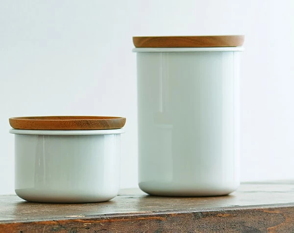 Keep your coffee beans and tea leaves fresh longer with the Hario Bona Tea & Coffee Canister. The enamel body and acacia wood lid are securely attached with a silicone seal to keep oxygen, heat, or sunlight from causing your coffee or tea to decay and lose its fresh qualities.