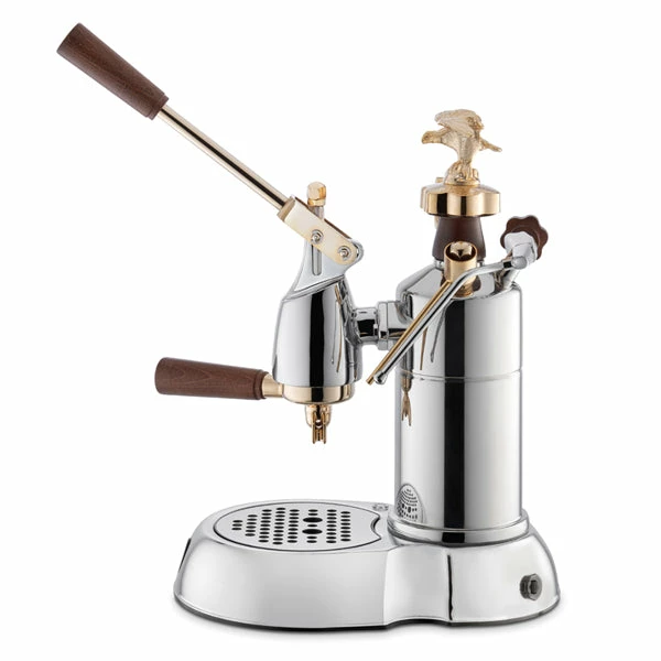 Like all coffee makers from the brand, the La Pavoni Expo 2015 is constructed with premium materials to give it a gorgeous look and of course, a solid performance. The chrome body is sleek and robust down to its violin-shaped base. Its boiler and steam wand are nickel-plated brass, while the lever is gold-plated and fitted with a beautiful rosewood handle. And on the very top of the machine, you’ll also find the iconic gold eagle perched.