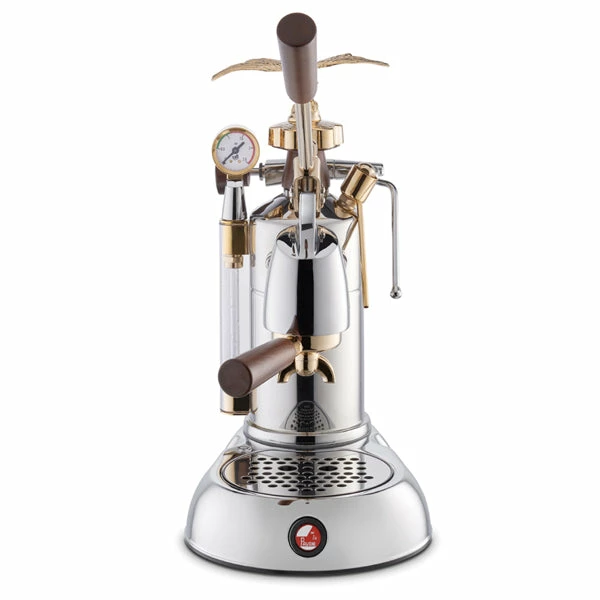 Gold-plated components – The gold-plated lever, gauge, and group handle gives the machine a premium but warm look and feel.