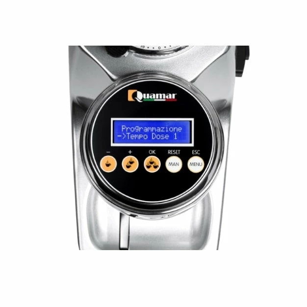 The Quamar Q13E Grinder has a built-in touch display that enables you to set three dosing timers: single, double, and triple shot. It also allows you to change a variety of grinder setting, including time, date, and burr replacement reminder.