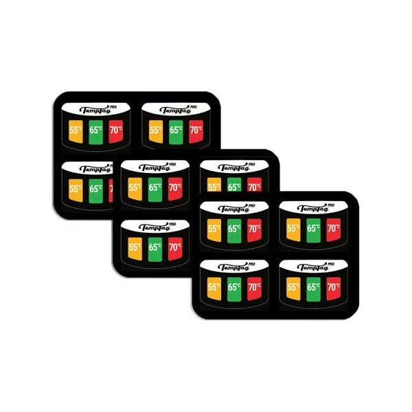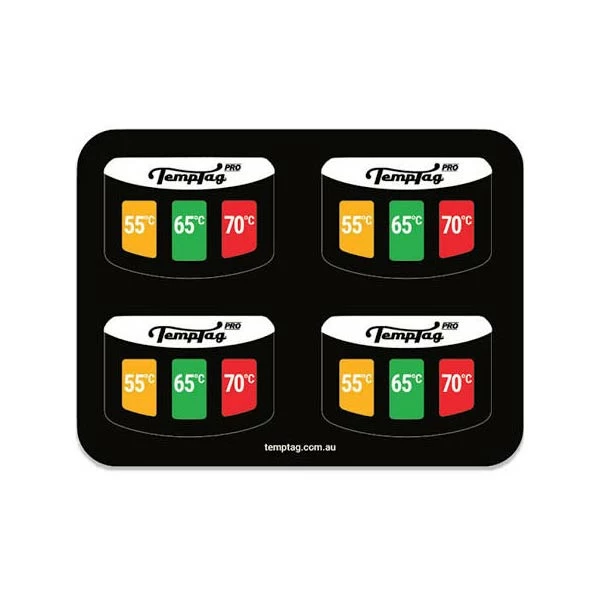 The TempTag Pro Milk Thermometer Pack is the next gen of milk temperature control. Featuring three windows on each sticker, the first window reacts at 55°C, the second window reacts at 65°C and third window reacts at 70°C.