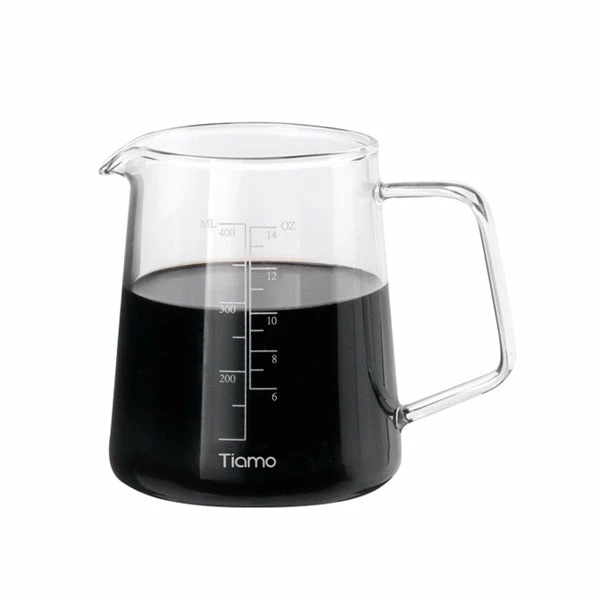 Measurements in Millimeters are found on the side of the Range server, providing you with the vision to brew coffee without scales. Heat-resistant and durable tiamo glass ensures the vessel is not accidentally broken through heat shock and also keeps your coffee warm whilst you decant the brew and slowly enjoy it.